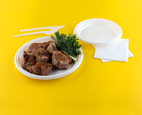В тарелки из полипропилена разливают супы, каши и выкладывают готовые блюда. Материал безопасен для человека, потому что при воздействии высоких температур не вырабатывает вредные вещества и подходит для повторного нагрева в СВЧ. В одноразовой посуде из полистирола подают только десерты и холодные закуски. При неправильном использовании материал плавится и выделяет вредные для организма человека канцерогены.